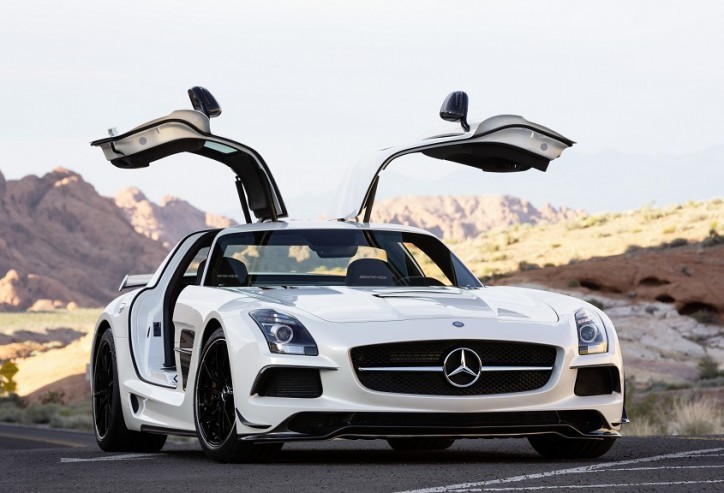 Mercedes-AMG presents the high-end super sports car version of the gull-wing model, the new SLS AMG Coupé Black Series. Inspired by the SLS AMG GT3 racing version, the fifth Black Series model from Mercedes-AMG boasts a fascinating mix of breath-taking design, outstanding driving dynamics and uncompromising lightweight construction in accordance with the “AMG Lightweight Performance” strategy. With a DIN kerb weight of 1550 kilograms, the SLS AMG Black Series achieves a power/weight ratio of 2.45 kg/hp.