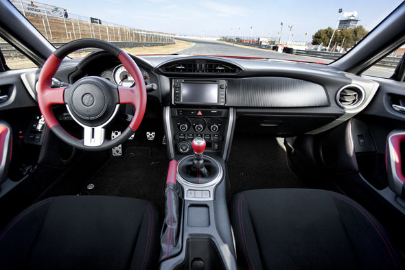 There’s only one spec, which doesn’t have a name but does have dual-zone climate control, sports seats, bi-xenon headlamps, daytime running LEDs, 17-inch alloy wheels and a proper mechanical limited slip differential as standard.Sat nav is a £750 option, while leather upholstery costs £1,600, and chavvy stickers for the body will set you back a couple of hundred notes.With first deliveries scheduled for July, the car is available to order now. No news on its twin car yet, though, the Subaru BRZ, but we’re guessing it’ll cost the very same.